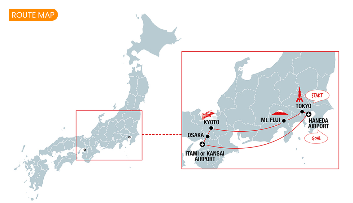 Je recommande en général d'arriver et de repartir de la même ville (et donc de faire une boucle), mais si votre temps est limité, arriver à Tokyo et repartir d'Osaka (ou inversement) optimisera votre itinéraire ! :)