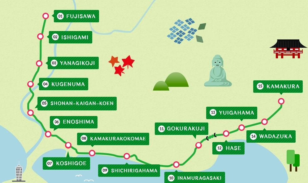 Si vous souhaitez louer des vélos, une agence de location de vélos se trouve également à la sortie Est de la gare de Kamakura! Je vous recommande +++ de faire le tour des points d'intérêts en vélo et de vous balader le long de la plage!