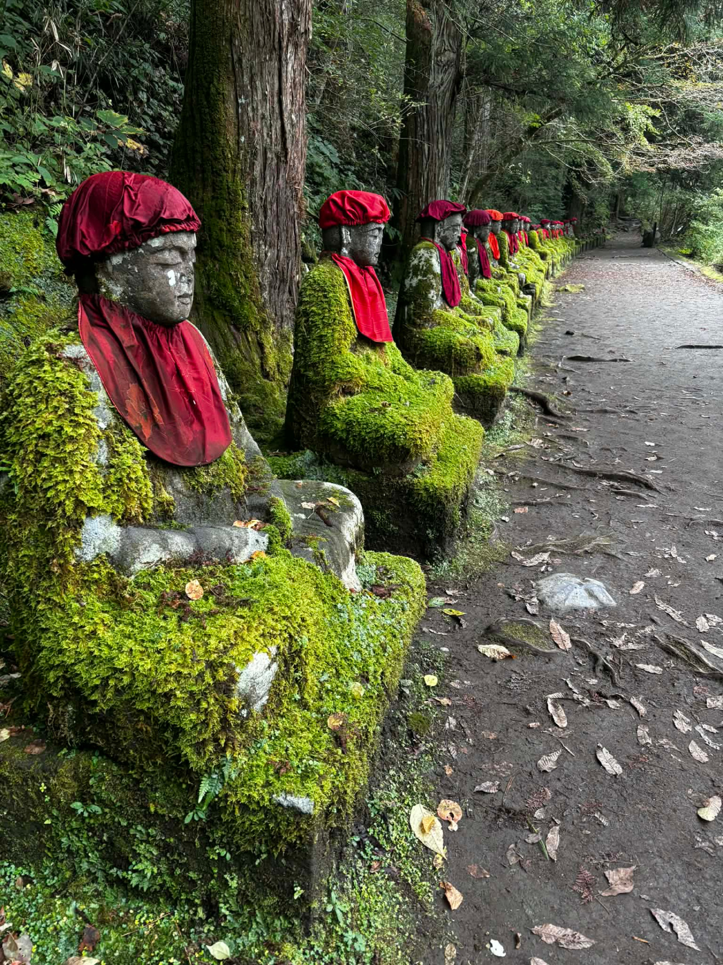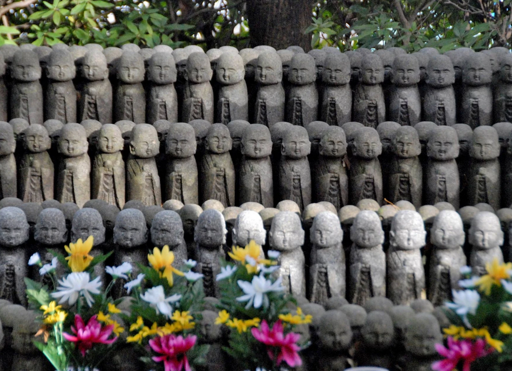 Connue sous le nom de Bake Jizo (« les Jizo fantômes »), cette rangée de statues est entourée de légendes: on dit qu'il est impossible de les compter correctement, leur nombre changeant mystérieusement à chaque tentative.