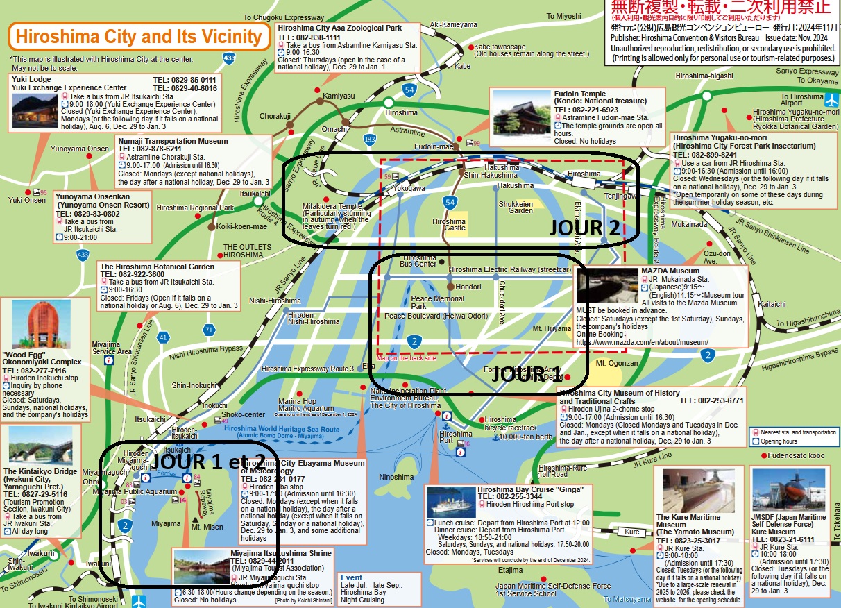Pour des articles plus complets sur chacun des lieux cités, je vous invite à parcourir la partie du blog sur la ville de Hiroshima et sur l'île de Miyajima.