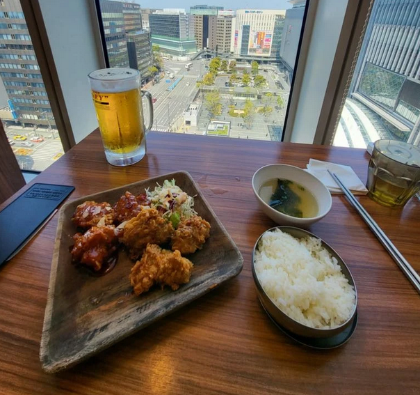 • Bibim' : restaurant coréen proposant divers plats coréens (bibimbap, poulet frit, UFO Chicken,...). Situé dans le food court du centre commercial KITTE HAKATA, à la sortie Ouest de Hakata Station.