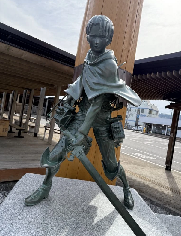 Pour les amateurs du manga "L'Attaque des Titans", on retrouve une statue du personnage Levi juste devant la gare. Un bus vous permettra également de vous rendre facilement aux différents musées "Attack on Titan in Hita Museum".