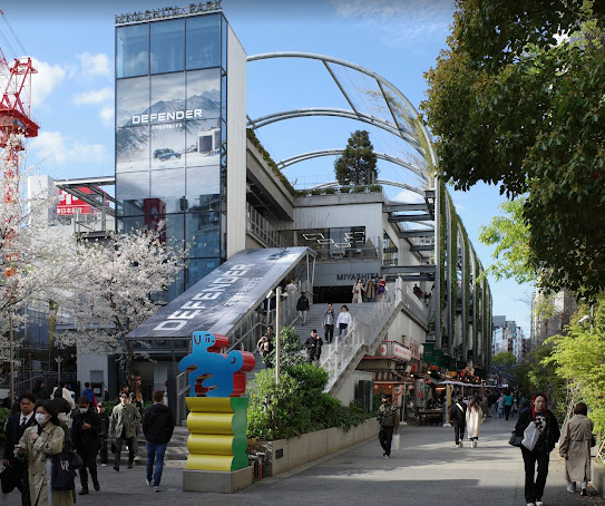 L'immense complexe commercial Miyashita Park s'étend sur 330 mètres de long de la voie ferrée et abrite des dizaines de magasins et des restaurants. Il a entièrement été rénové en 2021.