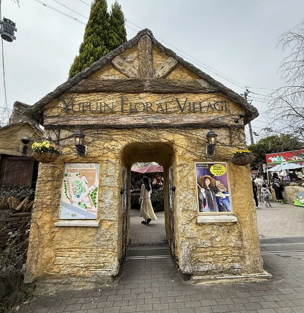 Situé le long de Yunotsubo Kaido, le Yufuin Floral Village est un petit complexe commercial thématique inspiré des villages des Cotswolds en Angleterre.