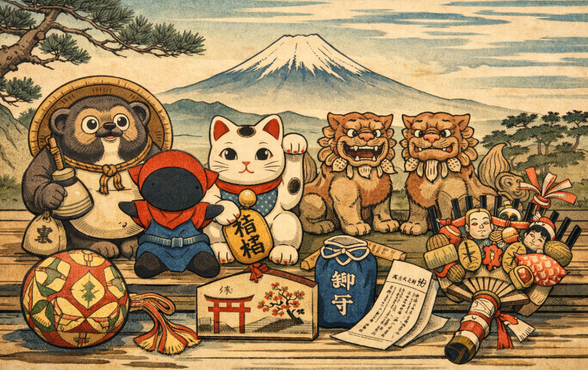 les porte-bonheurs des temples et sanctuaires japonais