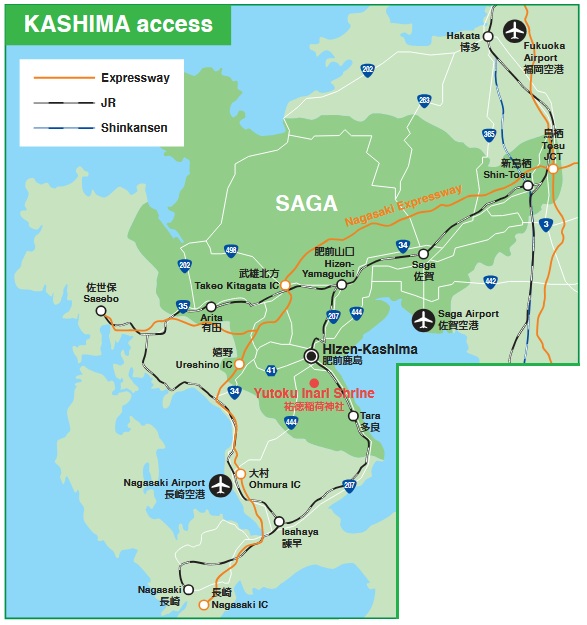 La préfecture de Saga est située dans la région de Kyushu, au sud-ouest du Japon. Bordée par la mer de Genkai au nord et par la mer de Ariake à l'ouest, elle est l'une des plus petites préfectures du pays, mais elle possède un patrimoine culturel et naturel riche.