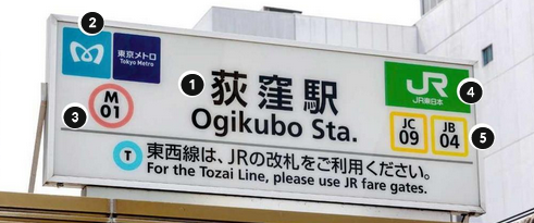 ➎ Nom des lignes de trains JR (ici JC09 = Chuo Subo Line, et JB04 = Chuo Rapid Line)